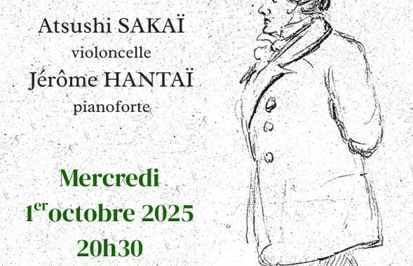 Concert Atsushi Sakaï et Jérôme Hantaï Programme : sonates opus 5 de Beethoven Date : mercredi 1er octobre 2025 20h30 Lieu : Temple du Foyer de l'Ame 7 bis, rue du Pasteur Wagner, 75011 PARIS Entrée libre, Participation aux frais.…